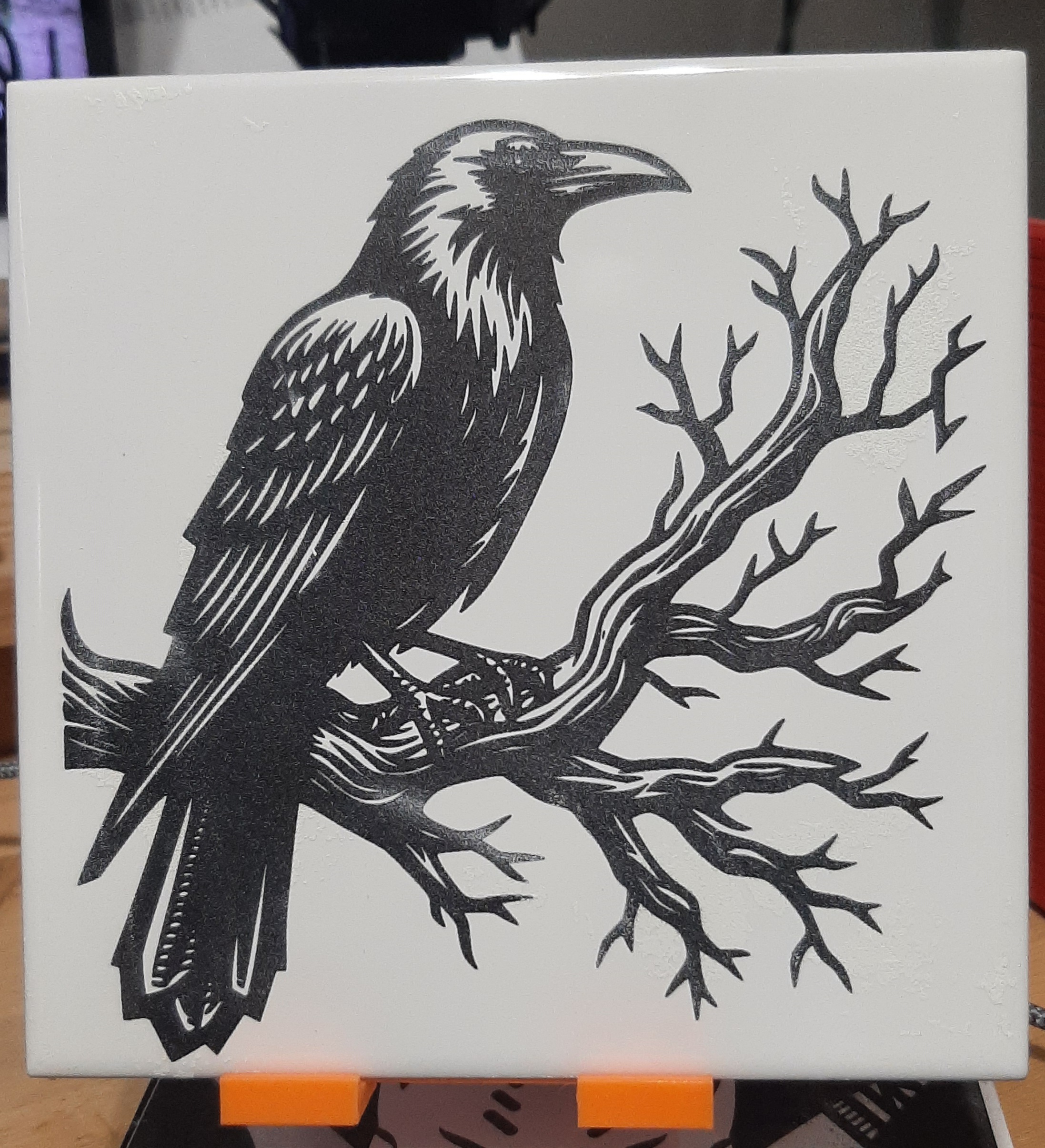 Laser-Engraved Ceramic Tile (Crow Artwork)