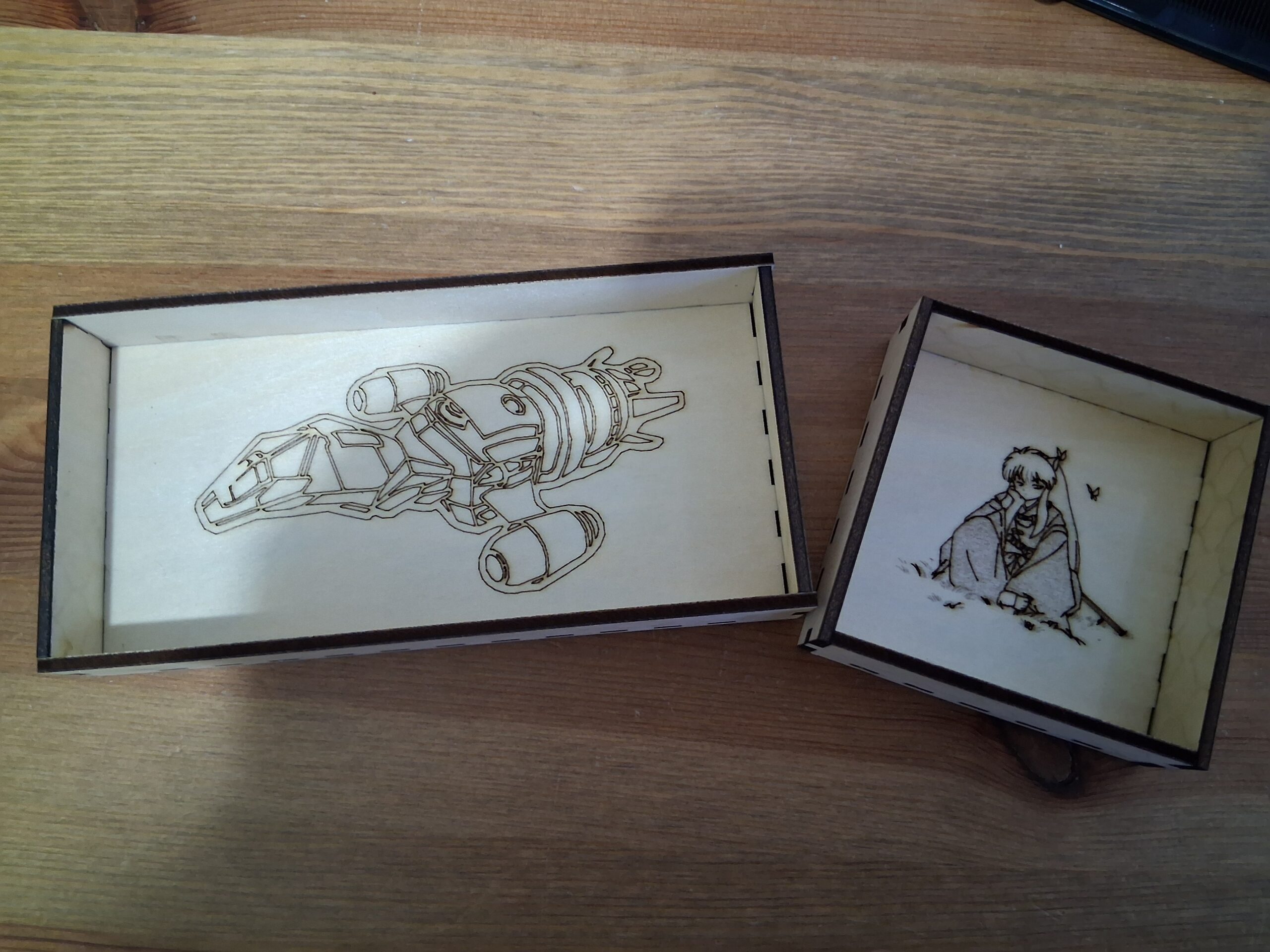 This project combines clean laser-cut joinery with detailed engraving, turning a practical storage piece into a fun, personalized display item — and yes, both characters absolutely aim to misbehave. (Artwork sourced from royalty fee image sources, not for sale, rights retained by the artist).