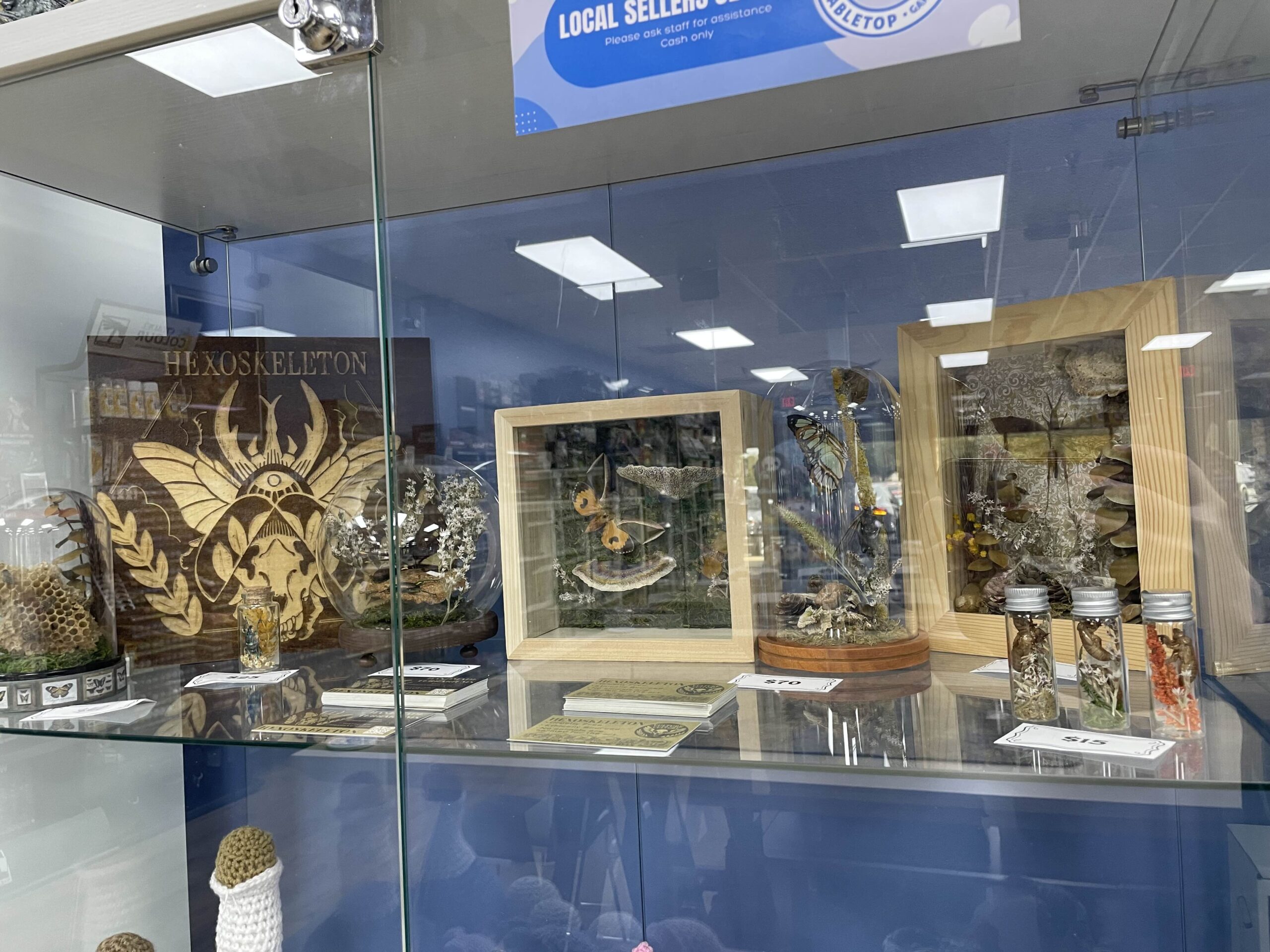 Hexoskeleton makes the incredible terrarium-style nature displays shown here.